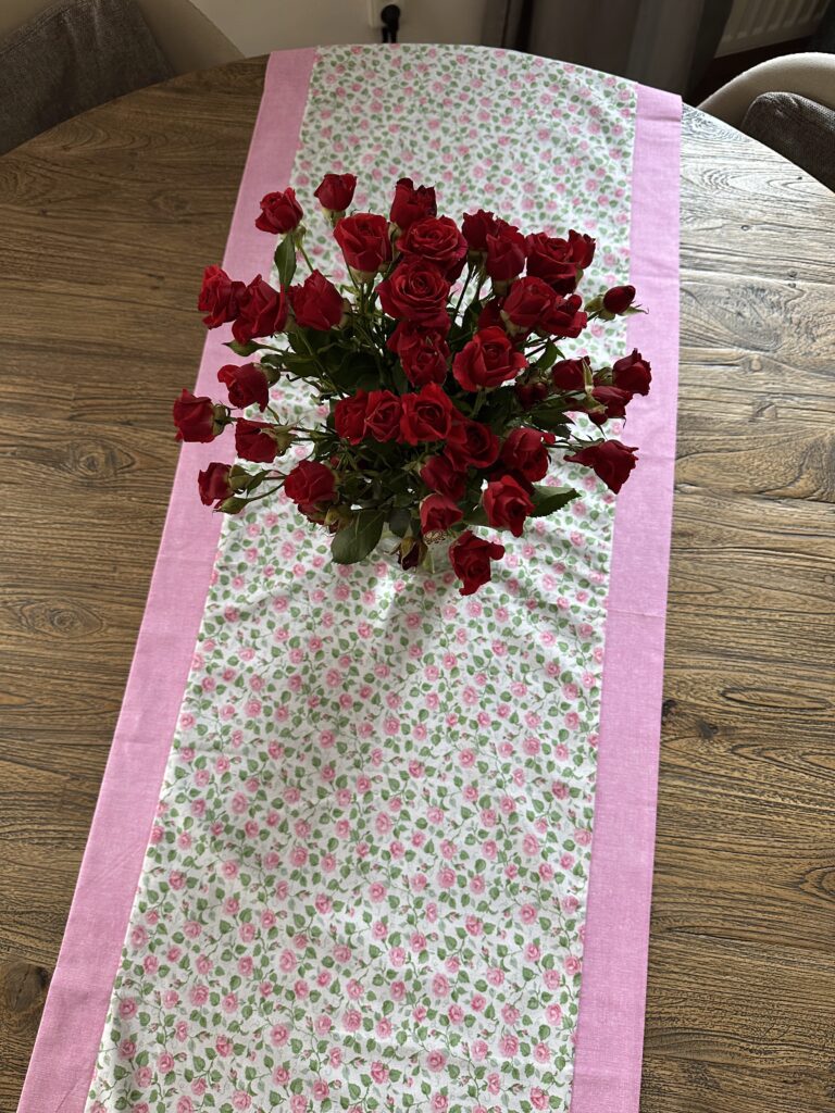 bavlněný ubrus o délce 2m s jemným růžovým dekorem
